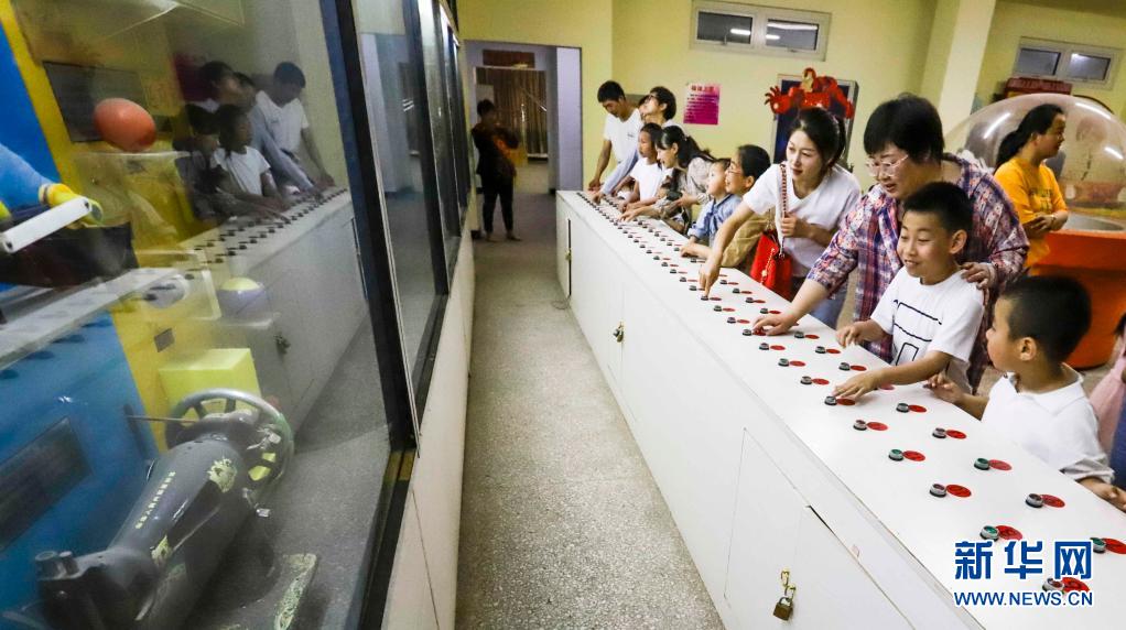 5月22日,市民和孩子在河北省遵化市科技馆参观体验。