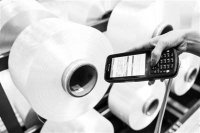 近年来,江苏省苏州市吴江区大力推进制造业智能化改造和数字化转型。图为近日在位于吴江区盛泽镇的恒力化纤工业丝智能车间,工作人员读取产品信息。 新华社记者 李博摄
