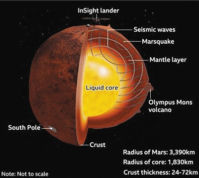 火星内部结构分层示意图。截图来源:BBC网站相关报道