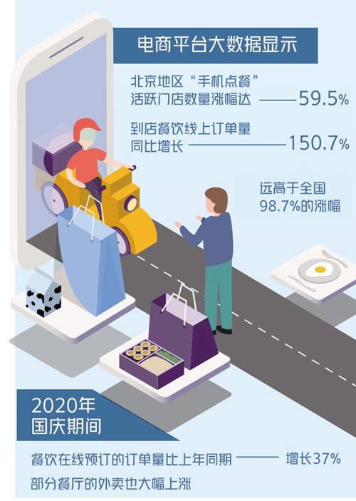 在近日举办的北京餐饮业数字化升级行动半年交流会上,电商平台大数据显示,北京地区“手机点餐”活跃门店数量涨幅达59.5%,到店餐饮线上订单量同比增长150.7%,远高于全国98.7%的涨幅。也就是说,在北京,越来越多的餐饮商户正在使用“手机点餐”为顾客提供服务。