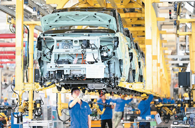 8月12日,工人在上汽通用五菱新能源总装车间生产线上忙碌。黎寒池摄(人民视觉)