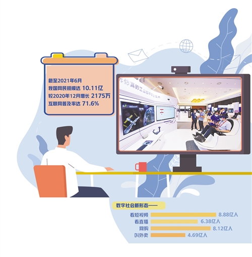 近日,中国互联网络信息中心(CNNIC)发布第48次《中国互联网络发展状况统计报告》。《报告》显示,截至2021年6月,我国网民规模达10.11亿,较2020年12月增长2175万,互联网普及率达71.6%。超10亿用户接入互联网,形成了全球最庞大、生机勃勃的数字社会。网民超10亿对经济社会发展意味着什么?全球最庞大数字社会又将带来哪些机遇?
