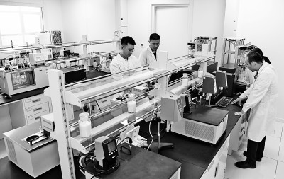 在大庆油田勘探开发研究院,科研人员在进行聚合物驱油实验。新华社记者 王建威摄