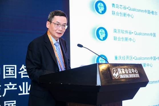图为高通公司全球高级副总裁、技术许可业务中国区总经理钱堃出席“双循环新发展格局企业白皮书暨研讨会”并发表讲话
