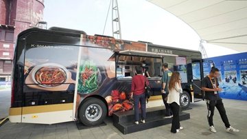 9月3日,人们在参观智能移动餐车。 2021年中国国际服务贸易交易会于9月2日至7日在北京举行。在首钢园区会场体育服务专题展区,一台搭载智能厨房的移动餐车吸引了观众的目光。这台智能移动餐车是在新能源汽车基础上升级改造的,智能炒菜机嵌入车体中,配有污水净化装置,炒菜过程无明火、无油烟,实现随炒随吃的便利体验。 新华社记者 王天聪 摄