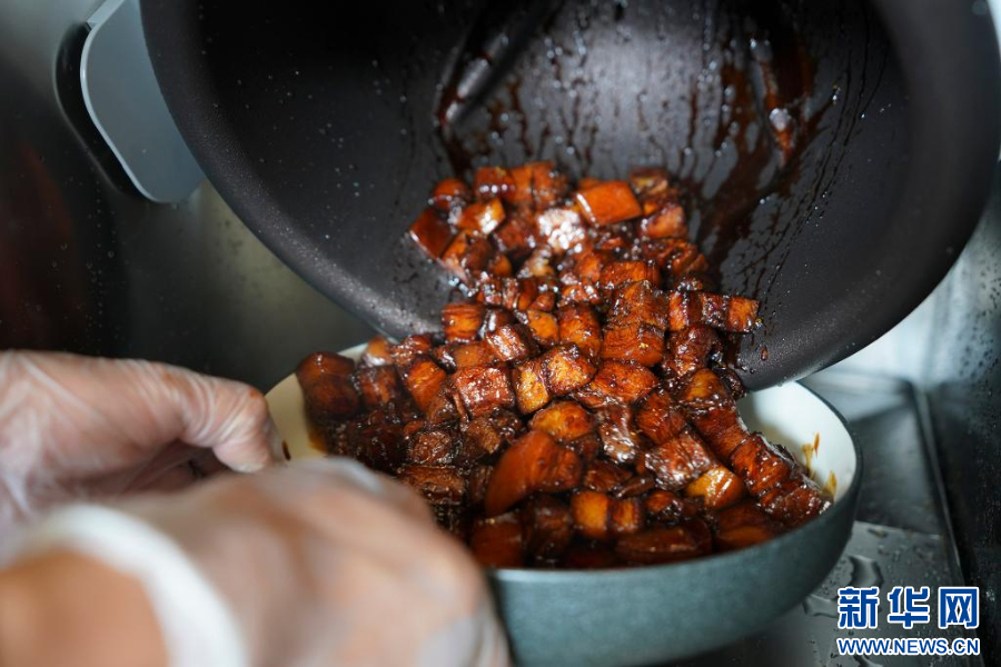 9月3日,工作人员将智能炒菜机烹饪好的食物装入盘中。 2021年中国国际服务贸易交易会于9月2日至7日在北京举行。在首钢园区会场体育服务专题展区,一台搭载智能厨房的移动餐车吸引了观众的目光。这台智能移动餐车是在新能源汽车基础上升级改造的,智能炒菜机嵌入车体中,配有污水净化装置,炒菜过程无明火、无油烟,实现随炒随吃的便利体验。 新华社记者 荣浩 摄pagebreak