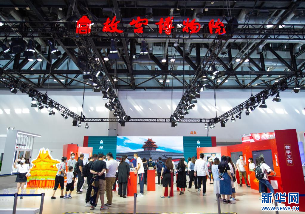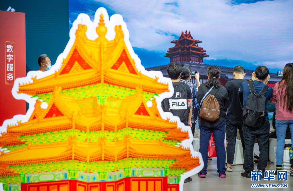 9月7日,观众在故宫博物院展位参观。 9月2日至7日,2021年中国国际服务贸易交易会在北京举行。位于国家会议中心展区的故宫博物院展位,运用数字技术再现故宫的建筑工艺、历史典故等内容,吸引众多观众参观体验。 新华社记者 陈钟昊 摄