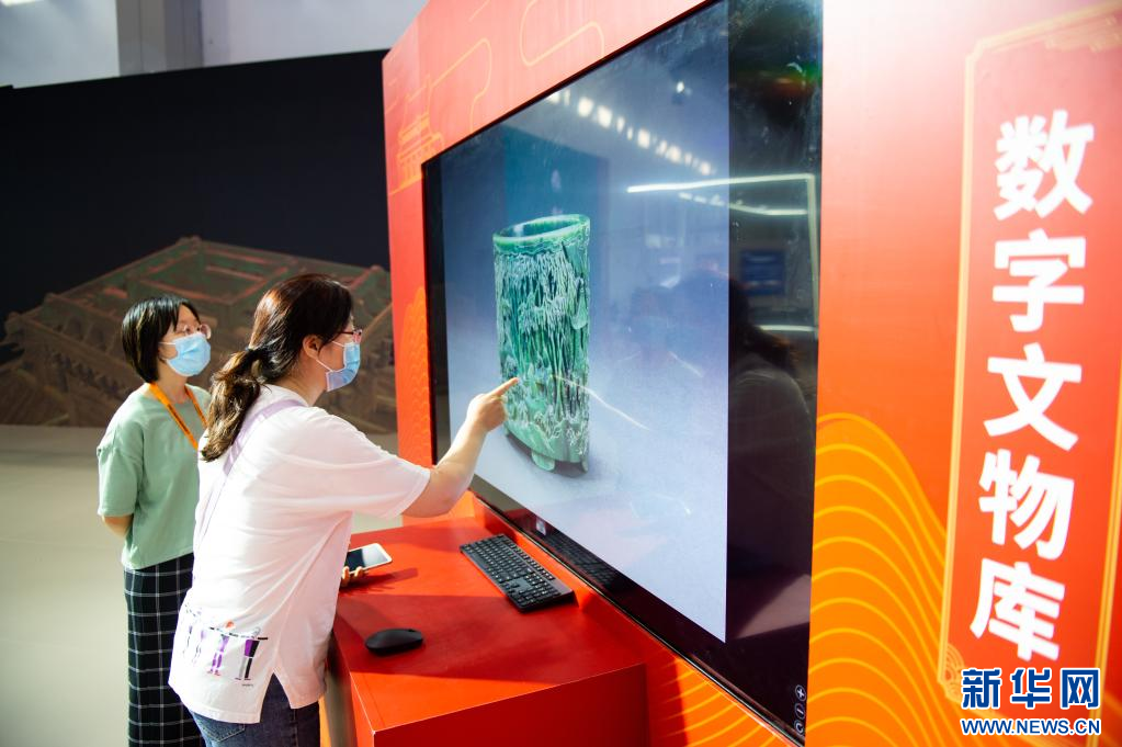 9月7日,观众在故宫博物院展位体验数字文物库。 9月2日至7日,2021年中国国际服务贸易交易会在北京举行。位于国家会议中心展区的故宫博物院展位,运用数字技术再现故宫的建筑工艺、历史典故等内容,吸引众多观众参观体验。 新华社记者 陈钟昊 摄