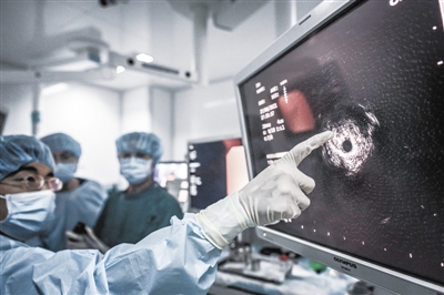 研究表明,实时电磁导航设备与超声内镜引导下穿刺活检技术联合诊断,可使周围性病变确诊率高于80%。“此项技术可以在肺部发现病灶(多为实性结节)初期进行精准定位,因此提高了活检定性分级的准确率,同时可以为多种介入治疗手段提供工作通道,真正实现精准医疗。”周德俊说。