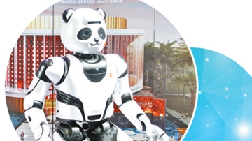 图①:大会上展示的“熊猫机器人”。新华社记者 李 欣摄