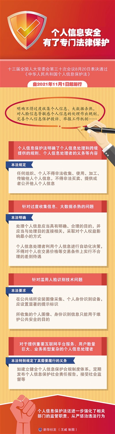 上海市海华永泰律师事务所付国峰律师表示,《个人信息保护法》确立的“告知-同意”核心规则,规定了侵犯公民信息的法律责任,对个人敏感信息和未成年人信息的保护更加严格,这将成为个人信息保护乃至捍卫公民权利的新篇章。