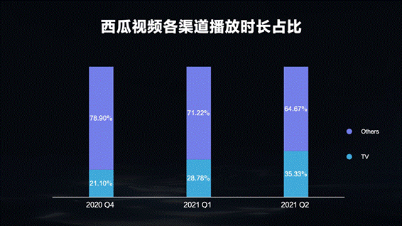 他透露,过去一年,中视频内容在电视端的消费呈增长趋势。西瓜视频数据显示,截至2021年第二季度,中视频在电视的消费时长已达总时长的35%。