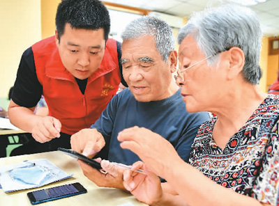 近年来,多地积极组织志愿活动,帮助老年人学会使用智能手机。图为志愿者在陕西省咸阳市小桔灯公益服务中心的教室里教老年学员使用智能手机的基本功能。