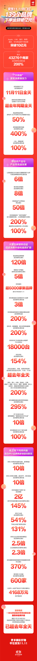 在这个京东11.11开门红创纪录的数字背后,是带给消费者的“更多、更快、更好、更省”体验,也是帮助更多品牌商家、农户、实体门店等参与者共同成长的步伐,有以京东为代表的新型实体企业扎实助力,精彩才刚刚开始。