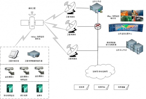 图:是基于沃安卫星通讯窄带高清视频传输(WLBHD)的业务架构