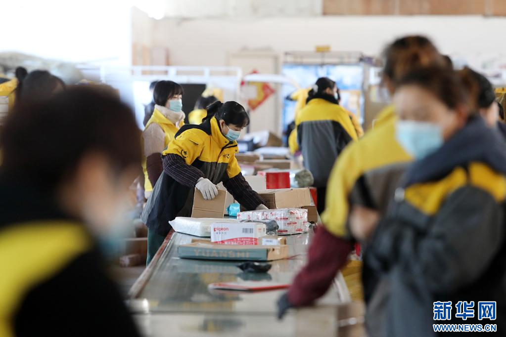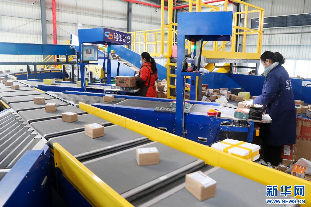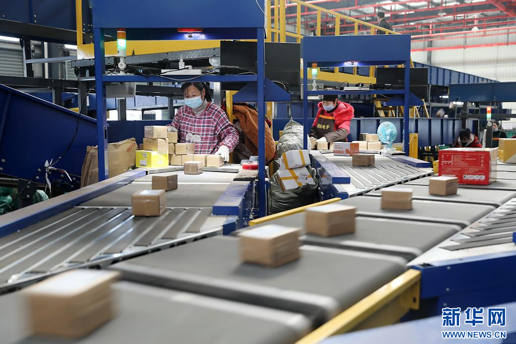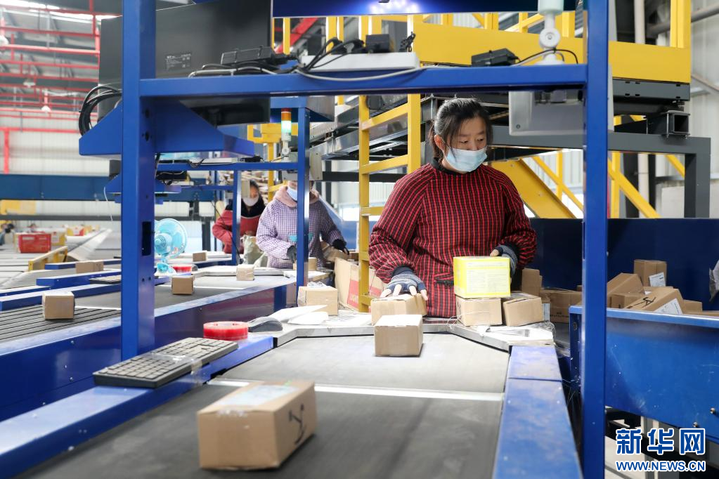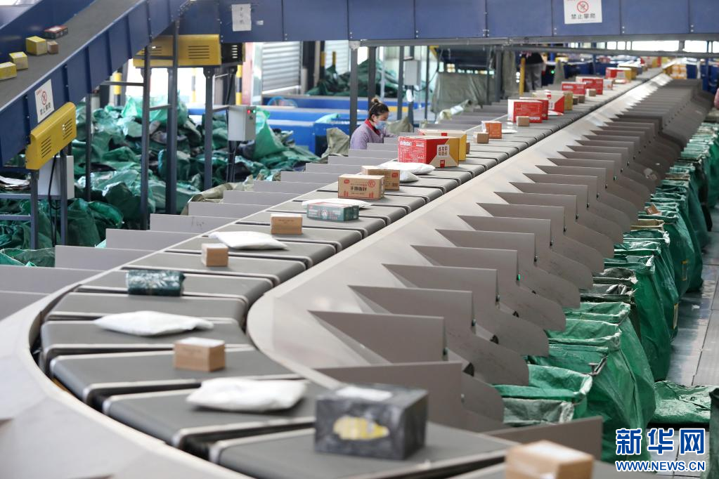 11月10日,在淮北市相山经济开发区快递物流园内的一家快递企业分拨中心,工作人员分拣快递包裹。 临近“双十一”,安徽省淮北市各快递企业通过更新智能分拣设备、增派人手,提升仓储和配送能力,积极应对“双十一”快递物流高峰。 新华社发(万善朝 摄)