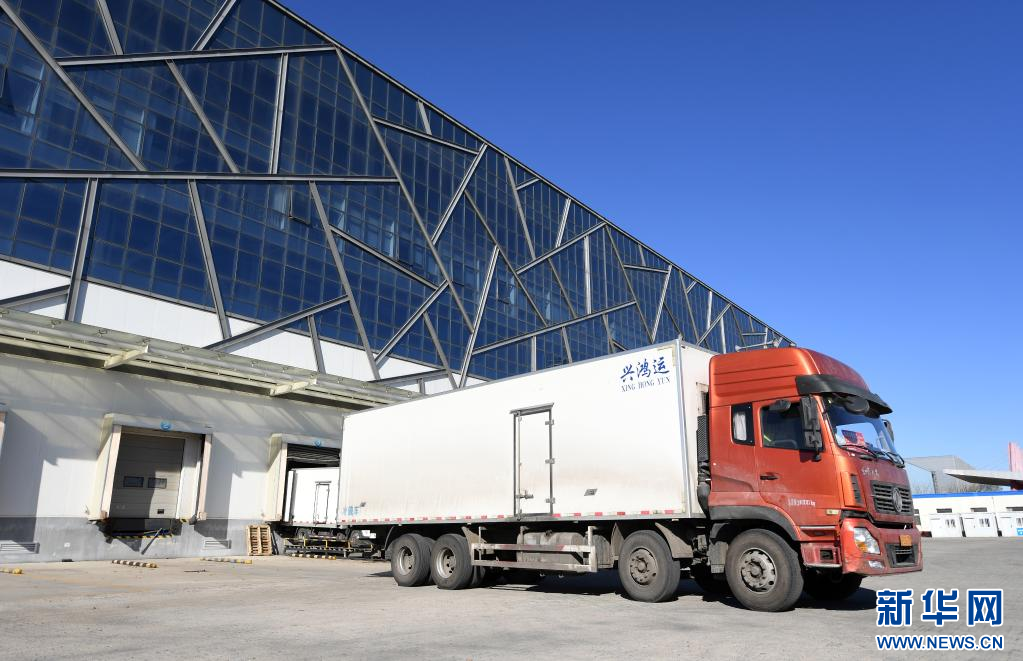 11月11日,冷藏配送车从位于北京市平谷区的马坊物流基地出发。 为应对“双十一”物流高峰,位于北京市平谷区的马坊物流基地增加人力投入,24小时运营,工作人员加紧将各类商品分拣、装车、配送。 新华社记者 任超 摄