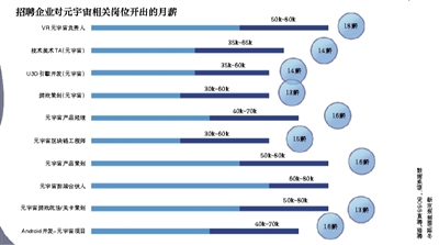 以杭州某游戏巨头为例,其开出最高达144万元的年薪(50K-80K·18薪)招募VR元宇宙负责人,职位要求是:5年以上头部游戏项目负责人及团队管理经验;在VR、元宇宙、游戏项目全生命周期等有丰富管理经验。另一家50-99人的科技公司也在招募高级ios开发工程师参与做元宇宙产品,待遇是50K-80K·18薪。游戏上市公司完美世界则以20K-45K·14薪的待遇招聘【元宇宙】场景概念设计师,要求3-5年工作经验,美术类或相关专业毕业,美术基础扎实。