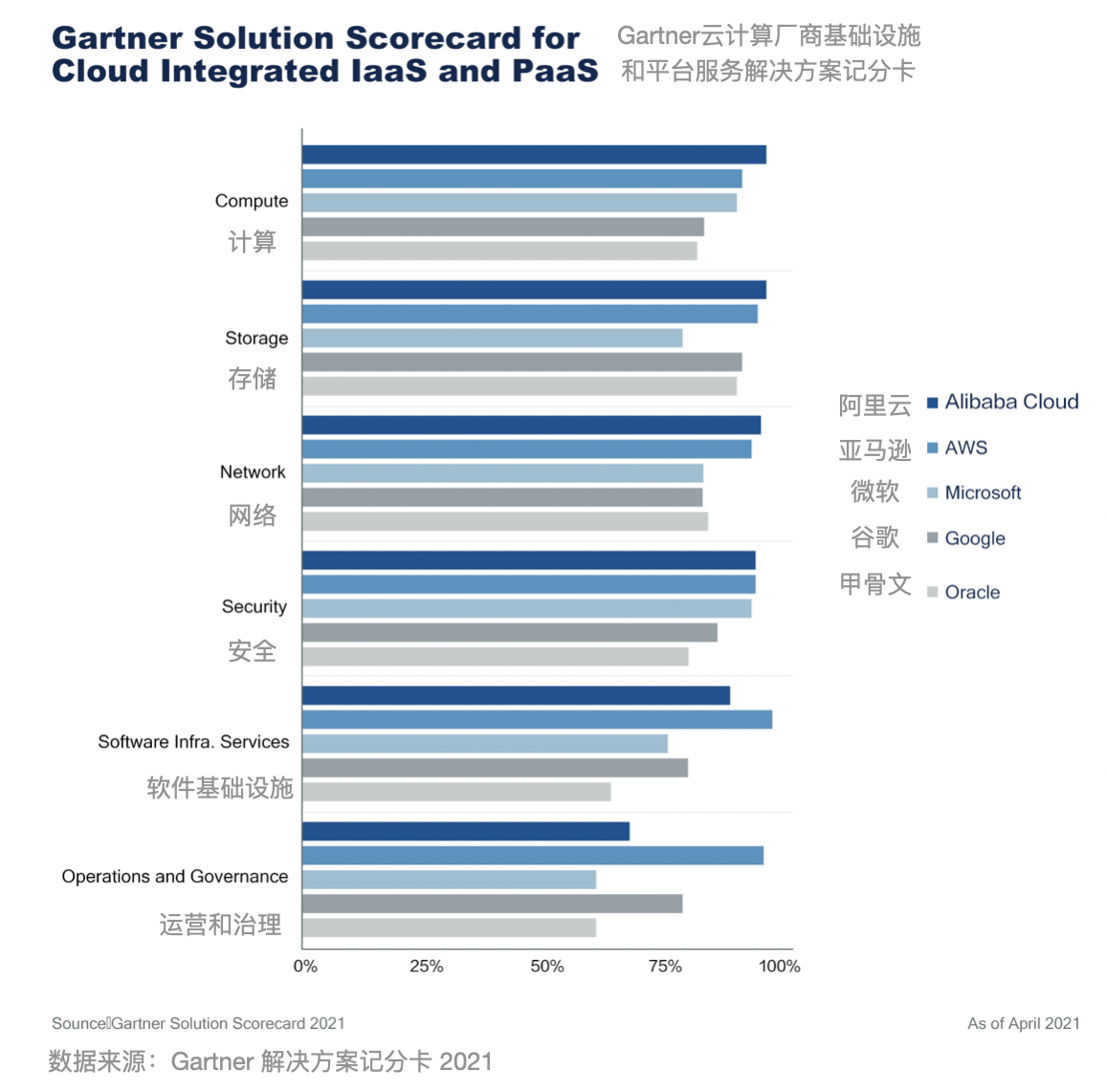 近日,国际研究机构Gartner发布最新报告显示,阿里云IaaS基础设施能力拿下全球第一,在计算、存储、网络、安全四项核心评比中均斩获最高分。据介绍,这也是中国云首次超越亚马逊、微软、谷歌等国际厂商。