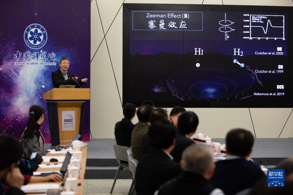 1月5日,在中科院国家天文台举行的新闻发布会上, FAST运行和发展中心首席科学家李菂介绍FAST在中性氢领域的最新重大成果。新华社记者 金立旺 摄