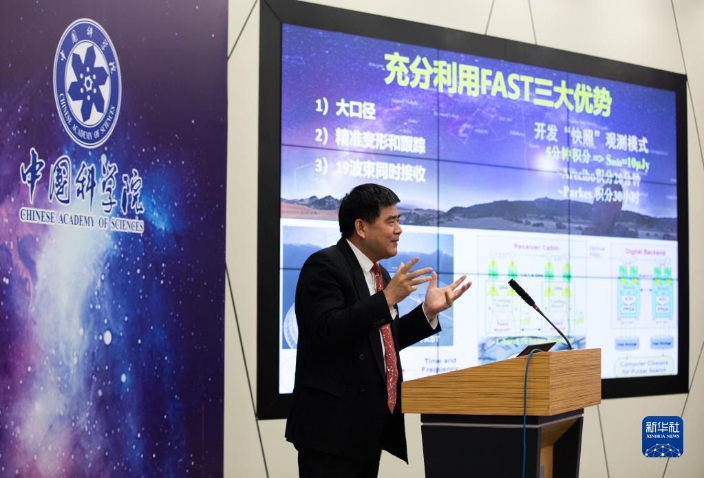 1月5日,在中科院国家天文台举行的新闻发布会上,国家天文台韩金林在介绍FAST在脉冲星搜寻方面的重要进展。新华社记者 金立旺 摄