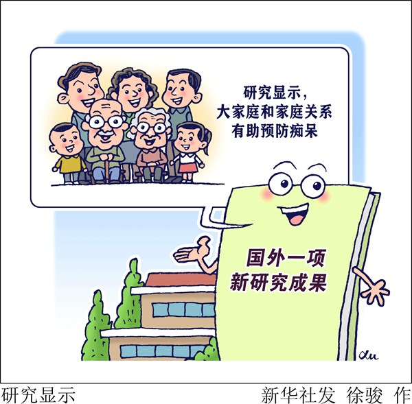研究人员说,这一研究成果对于规划老年人的护理及生活服务等非常重要。即便无法保证与家人一起生活,也应该鼓励老年人多与邻居或社区人员、养老机构其他人员等积极交流,以延缓痴呆症的出现及发展。