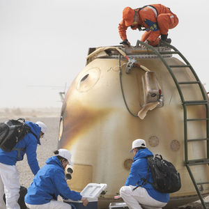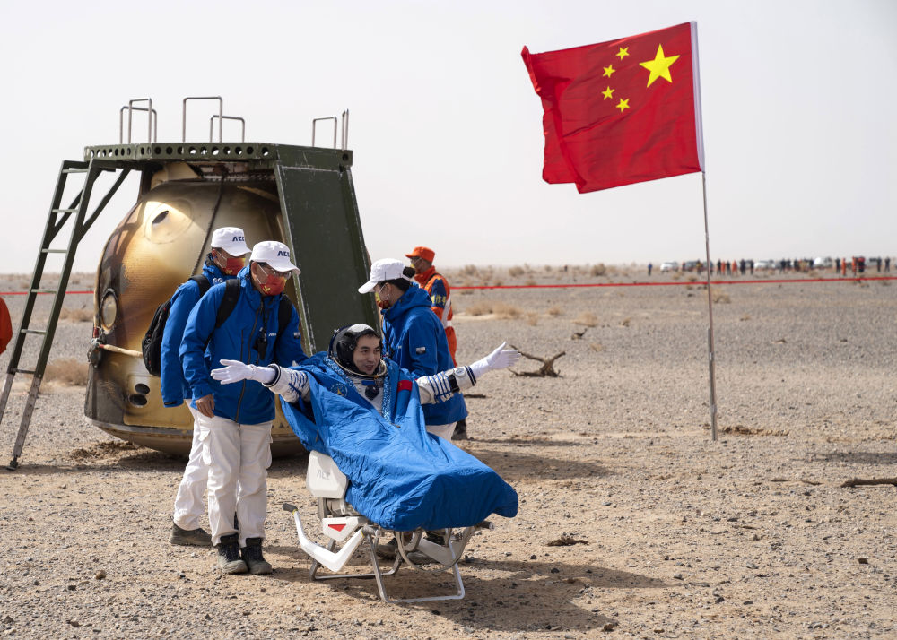 ↑4月16日,神舟十三号载人飞船返回舱在东风着陆场成功着陆。这是航天员翟志刚安全顺利出舱。