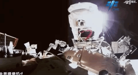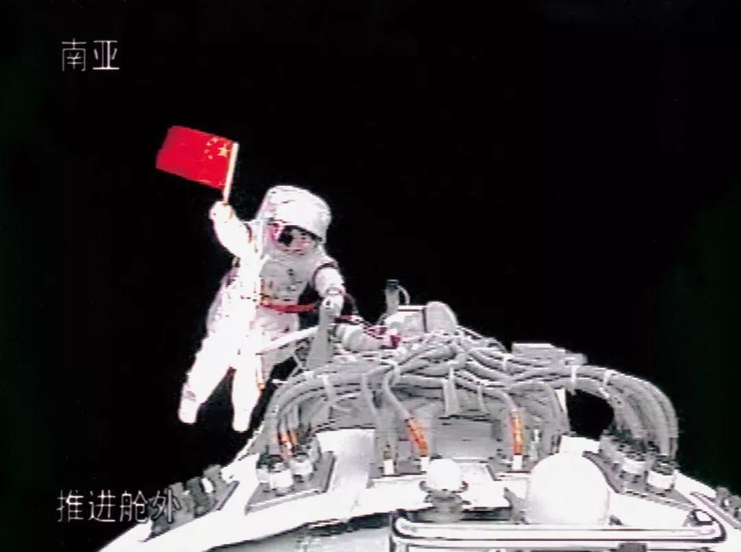 △2008年,翟志刚手持五星红旗进行太空行走。