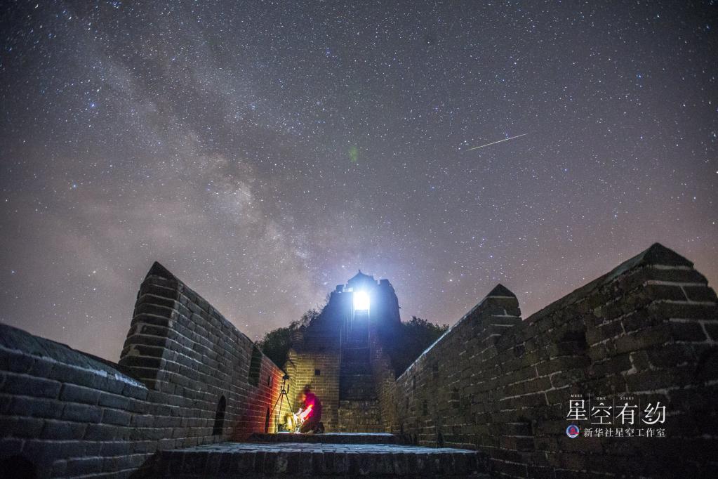 这是北京市天文爱好者王俊峰2017年4月23日在河北承德金山岭长城拍摄的天琴座流星雨。(本人供图)