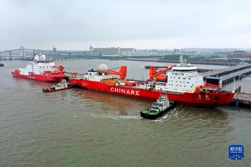4月26日,“雪龙”号抵达中国极地考察国内基地码头。新华社发(自然资源部中国极地研究中心供图)