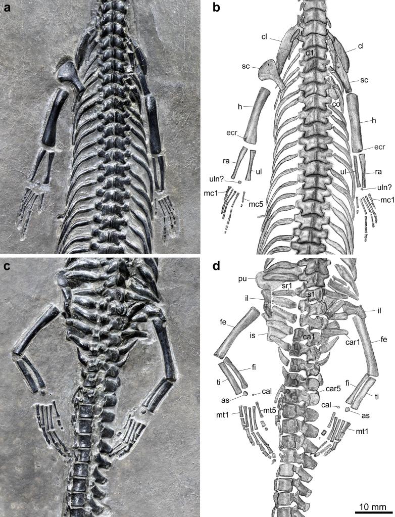 长尾红河龙前后肢部分。(中科院古脊椎所供图)