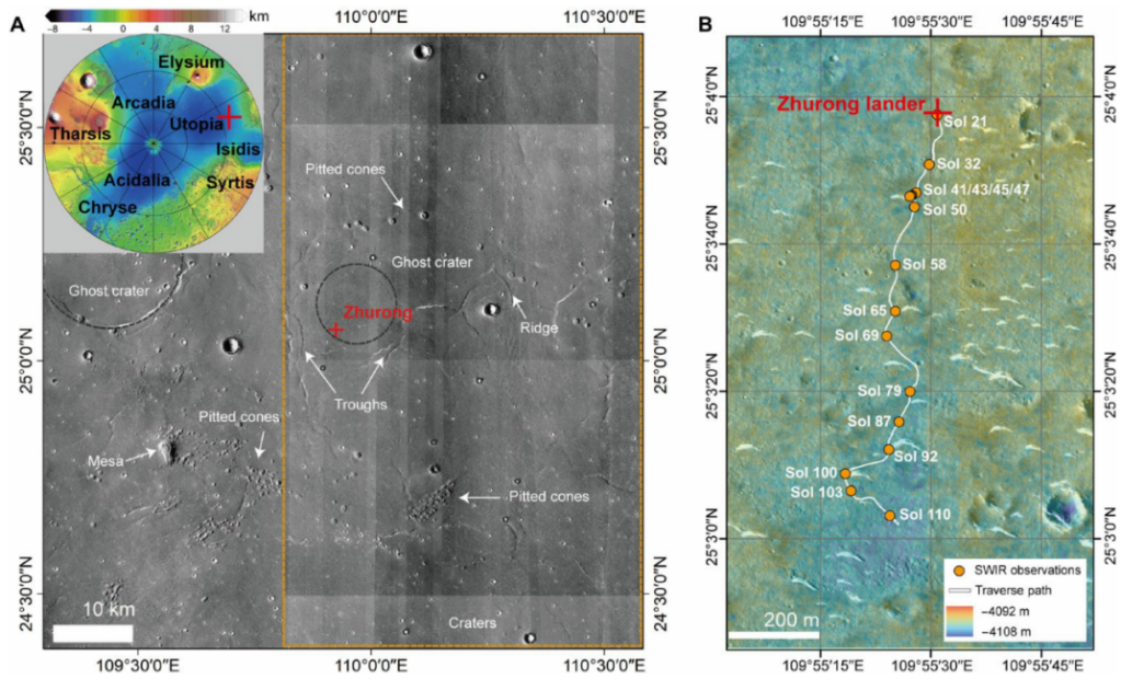 这一发现对理解火星的气候环境演化历史具有重要意义,也标志着祝融号实现了国际上首次利用巡视器上的短波红外光谱仪在火星原位探测到含水矿物。