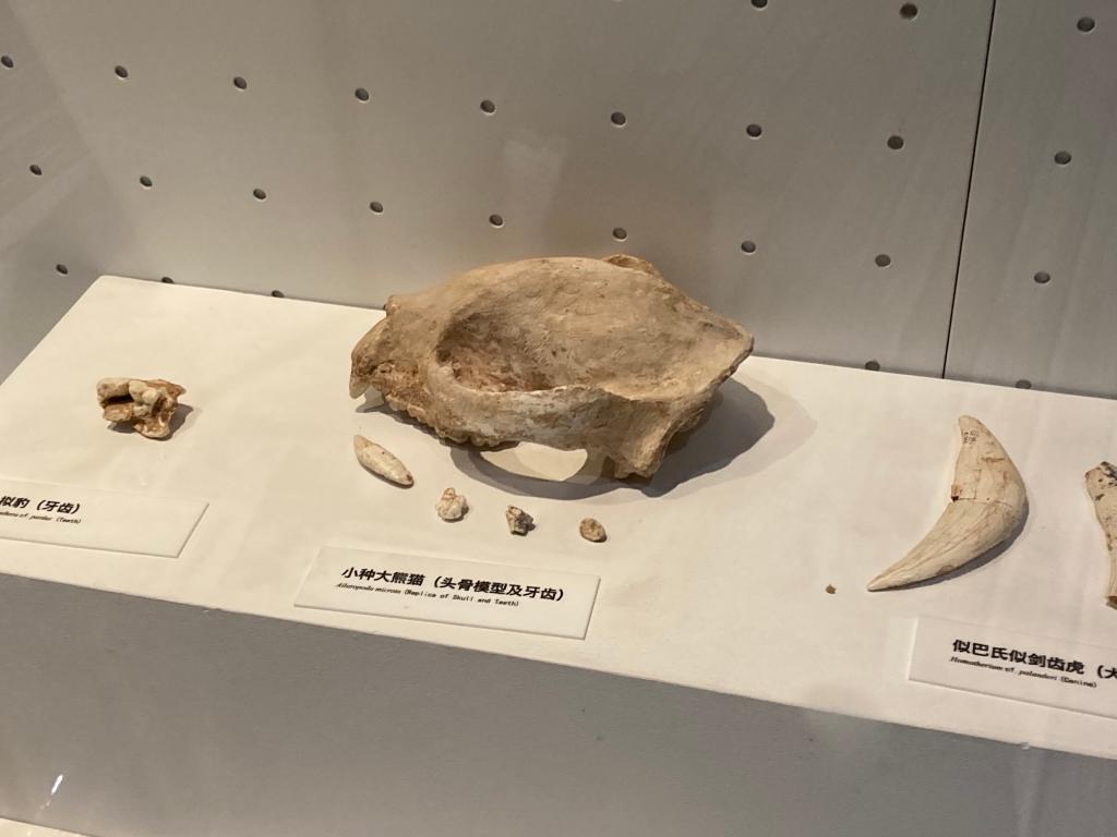 小种大熊猫头骨和牙齿模型。新华社记者 刘恩黎 摄
