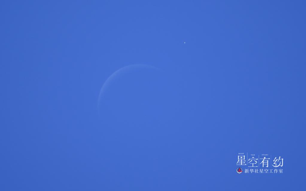 这是天津市天文爱好者杨婧2022年5月27日上午在天津拍摄的“金星合月”。(本人供图)