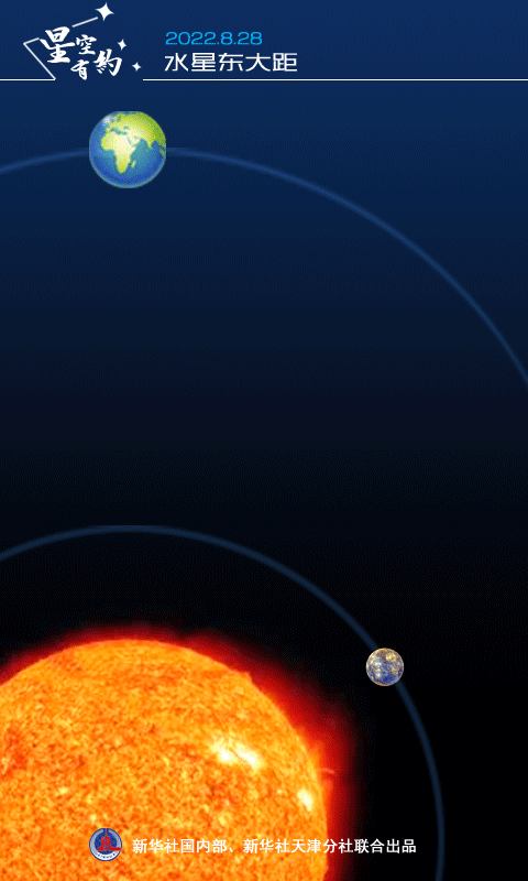 新华社天津8月26日电(记者周润健)8月28日,水星将迎来2022年第五次大距,也是第三次东大距。天文科普专家表示,本次大距时,水星的地平高度有些低,观测起来有一定难度。届时如果天气晴好,感兴趣的公众可借助双筒望远镜或小型天文望远镜,在当天日落后的西偏南方低空,尝试寻找水星的神秘身影。