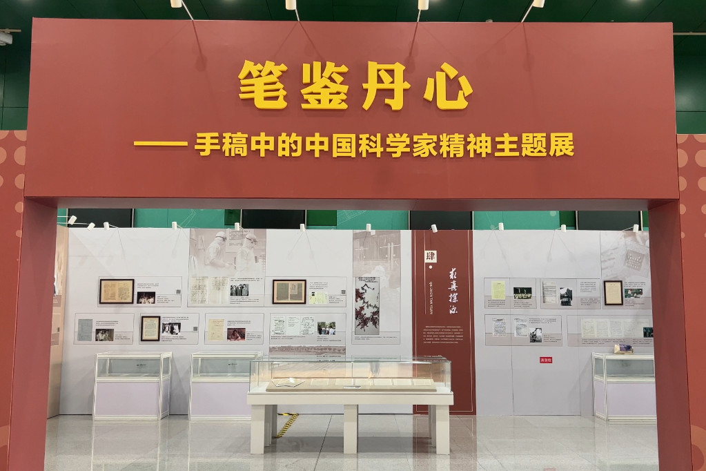 “笔鉴丹心——手稿中的中国科学家精神”主题展览现场。新华社记者 温竞华 摄