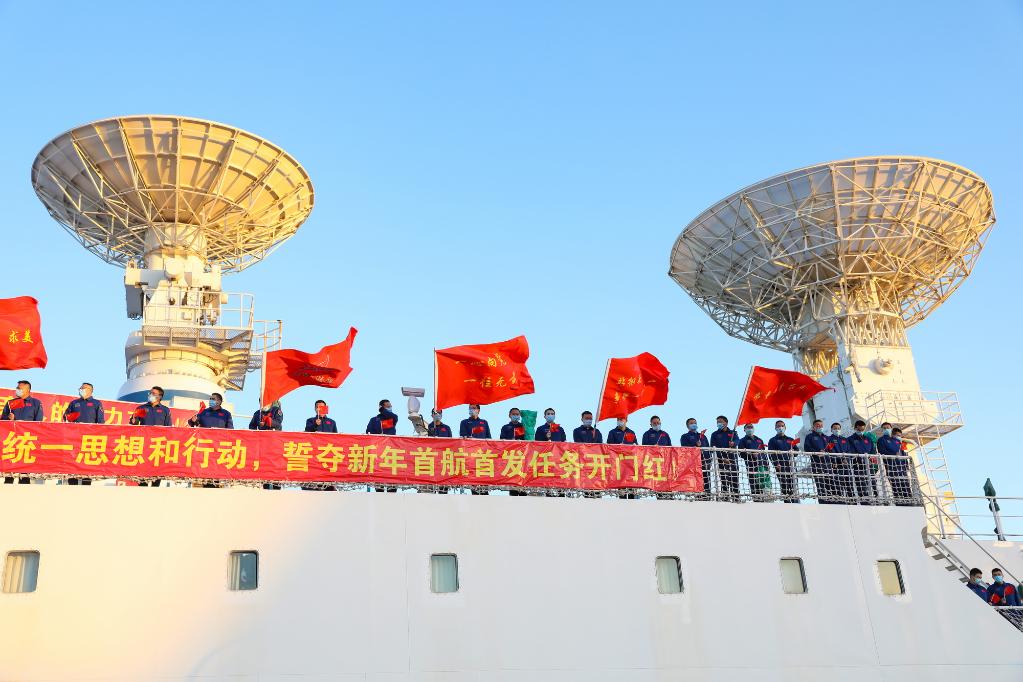 远望3号船动力系统党支部书记赵明说:“出航前,我们深入学习宣传贯彻党的二十大精神,不断坚定全体船员的必胜信念。本航次,我们将在海上迎来2023年元旦和春节,全体船员深感使命重大、责任光荣,我们有信心、有能力以优异成绩夺取新年任务‘开门红’,用任务圆满成功向亲朋好友报喜、为祖国繁荣添彩!”