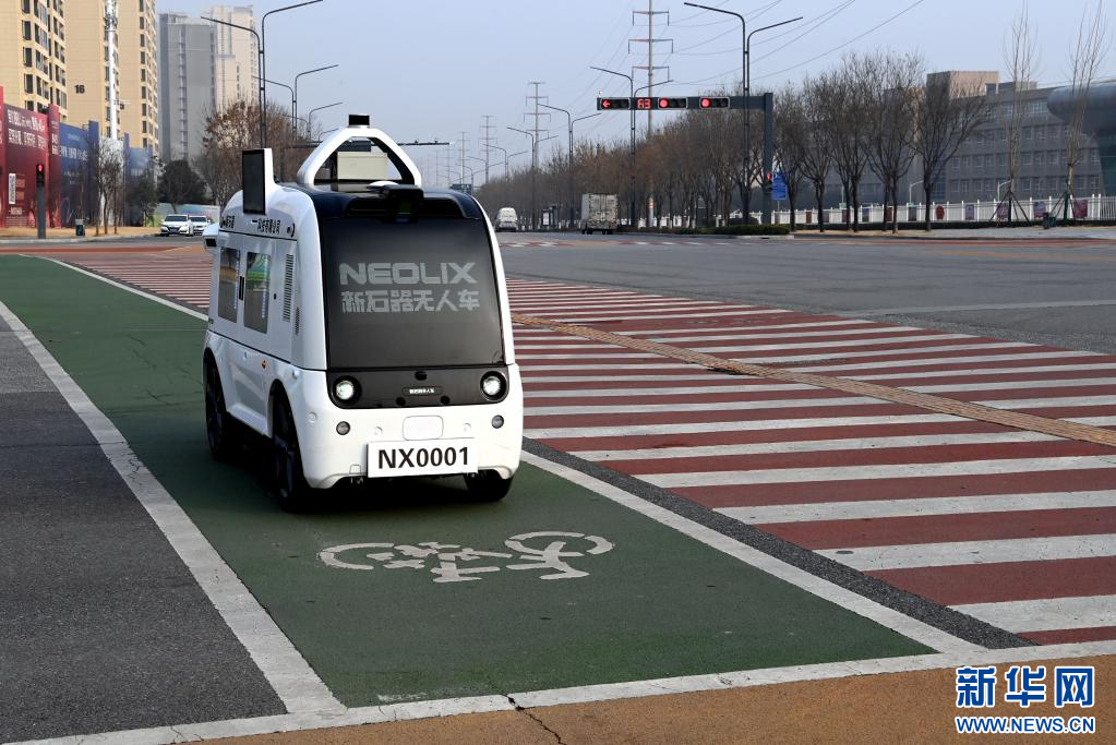 1月9日,无人配送车行驶在西咸新区沣西新城尚业路上。