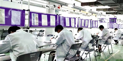 工人们在进行控制器电路板的组装检测。(芜湖固高自动化技术有限公司供图)
