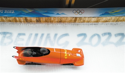 2月14日,2022北京冬奥会男子双人雪车第1、2轮,中国选手孙楷智、吴青泽出战。