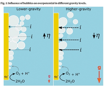 在其他星球实现人类生存需要燃料和可呼吸的空气。人们提出了一个办法同时获取两者:用电分解水,获得两种基本气体——氢可以作为燃料,氧可以供给呼吸。然而,大多数水分解电化学研究都是在地球重力条件下进行的。而且,探索非地球重力的研究常需要昂贵的飞行操作,但也只能模拟超低重力环境。