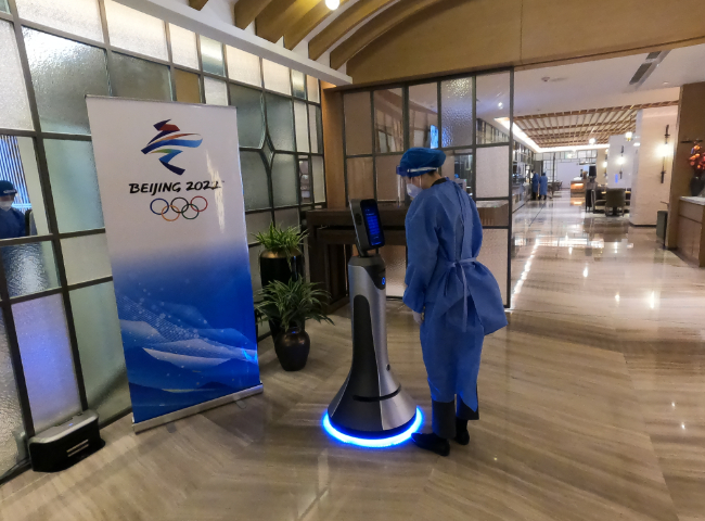 受到疫情影响,本届冬奥会的疫情防控工作至关重要。在各大场馆的入口处,冬奥会的巡检防疫机器人在工作,运动员们无需摘掉口罩,就能快速完成测温等环节进入场馆。