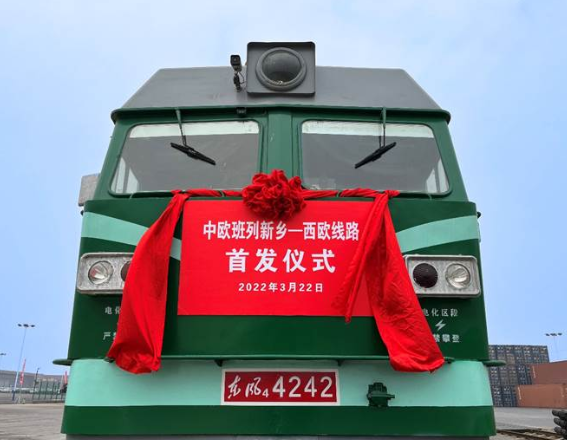 3月22日,中欧班列新乡—西欧线路首趟货运班列从位于国家新乡经济技术开发区的河南现代公铁物流园正式“扬帆起航”。