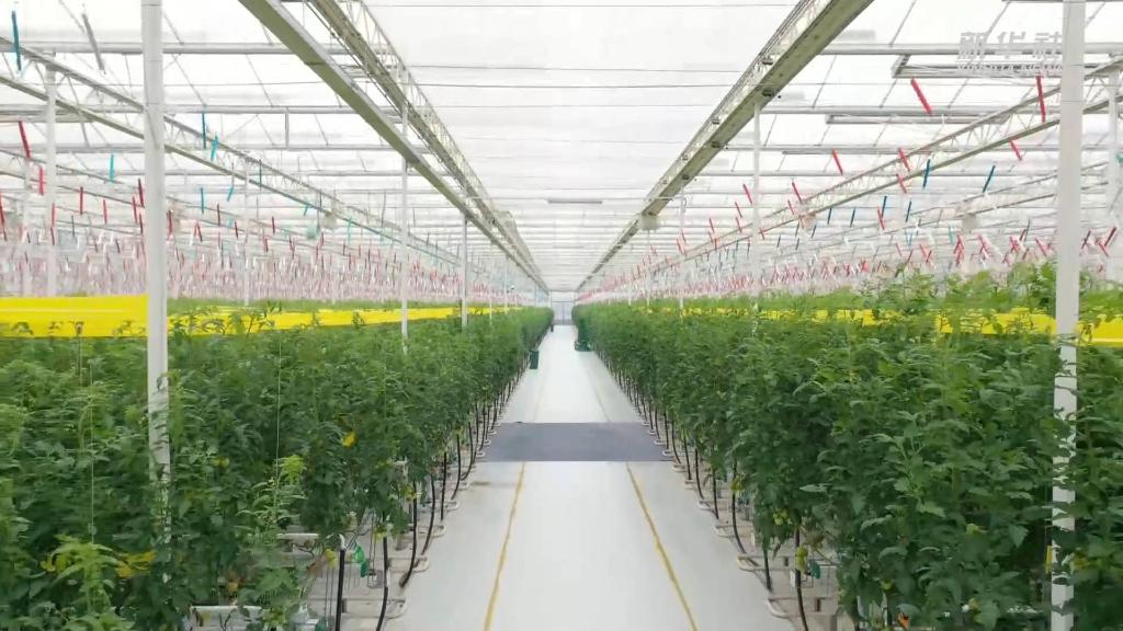 农业产业基地负责人介绍,智慧温室里的多项“黑科技”,帮助番茄实现无土立体栽培。