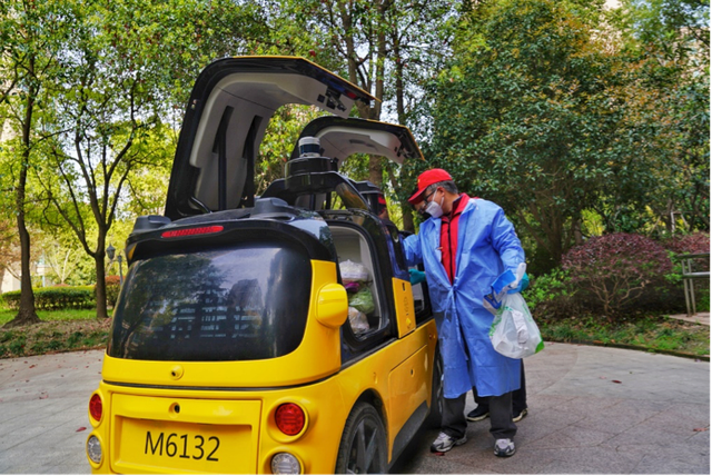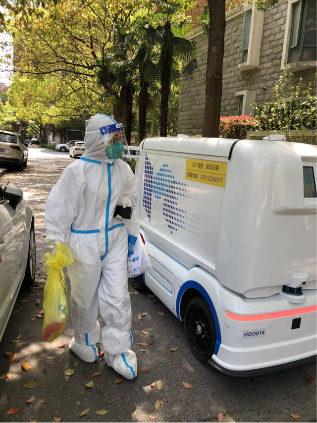 4月2日,美团也从北京紧急调送一批自动配送车魔袋20,经过两天一夜急行,于4月4日抵达上海。当天上午,自动配送车开始在浦东新区美团买菜康桥路站调试,4月5日正式与站点协力为绿洲康城社区居民配送生活物资。该车一次性载重超150公斤,通过无接触配送,可有效缓解当下上海社区抗疫中“最后一公里”的配送难问题。