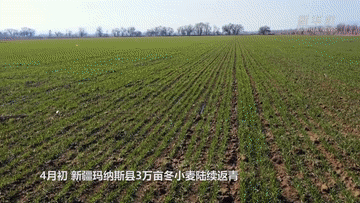 4月初,新疆玛纳斯县3万亩冬小麦陆续返青。