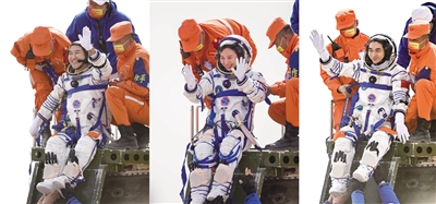 2021年10月16日,航天员翟志刚、王亚平、叶光富在酒泉卫星发射中心搭乘神舟十三号载人飞船进入天和核心舱,成为入住中国空间站的第二批航天员。