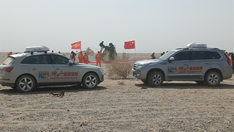 4月16日,神舟十三号载人飞船返回舱在东风着陆场成功着陆。执行飞行任务的三名航天员翟志刚、王亚平、叶光富安全顺利出舱,神舟十三号载人飞行任务取得圆满成功。迅翼卫通(StarWin)为新华网此次直播报道神舟十三号返回提供了有力的保障。