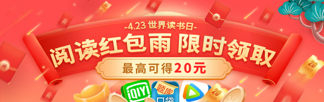一年一度世界读书日即将到来,为全面深入推进全民阅读,营造浓郁书香社会,形成多读书、读好书的文明风尚,4月22日至5月16日,联通沃阅读策划推出阅读红包雨限时领取活动,面向广大用户提供10万份话费红包、热门VIP、银质书签、蓝牙音箱等超值大奖,四重福利等你来拿!