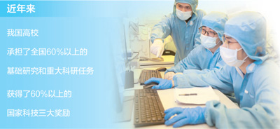 数据显示,近年来,我国高校承担了全国60%以上的基础研究和重大科研任务,获得了60%以上的国家科技三大奖励,为实现“两个一百年”奋斗目标贡献了重要的高校力量。
